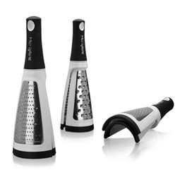 Een goede rasp behoort tot de standaard inventaris van iedere keuken. Wij bieden uitsluitend raspen van topkwaliteit aan zoals Microplane, Cuisipro en Rösle. Een rasp heeft, afhankelijk van de grootte, rijen met scherpe kleine snijrandjes. Hierin verschillen raspen van elkaar. Er zijn verschillen in grofheid. Sommige raspen werken in twee richtingen en zijn gemaakt van roestvrij staal.