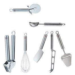 In een goed uitgeruste keuken is het aangenaam koken. Allerhande kwalitatief keukengerei helpt u in uw dagelijkse taken. Wij bieden u in degelijke collecties zoals Rösle, Cuisipro en Küchenprofi een ruime waaier aan keukengereedschap als tangen, mengkommen, zeven, gardes, spatels, maar ook gerei als een knoflookpers, vleeshamer, pincet om makkelijker ingrediënten te verwerken. Voor het slagen van een recept is ook meten en wegen onontbeerlijk, dus ook weegschalen en maatbekers vindt u bij ons.