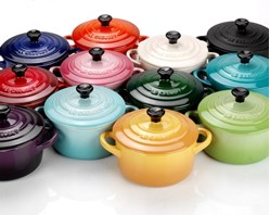 Een klassieker van formaat: de gietijzeren cocotte van Le Creuset, in een hele reeks kleuren.